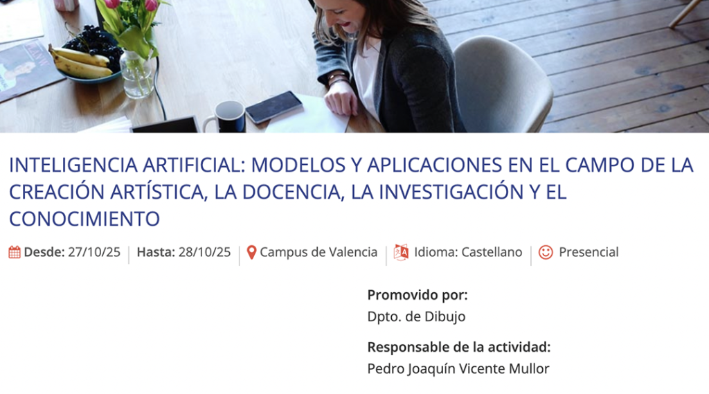 Urriaren 28an, FEMIAS presente egongo da Valentziako Universitat Politècnica-k antolatutako jardunaldietan, “Adimen Artifiziala: ereduak eta aplikazioak arte sorkuntzaren, irakaskuntzaren, ikerketaren eta ezagutzaren arloan” izenburupean.